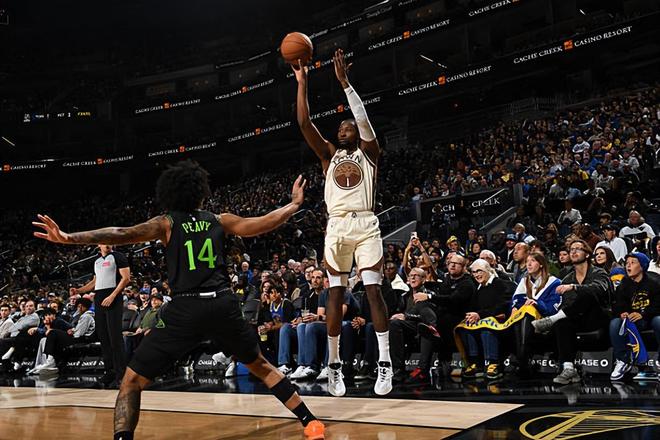 本场比赛中,勇士的替补锋线新星乔纳森-库明加(Jonathan Kuminga)完成了复出,他在复出首战中的表现其实还是不错的。库明加全场出场18分48秒,投篮8中4,三分线外5中2,得到了10分1篮板2助攻的数据,还有2次失误和2次犯规,正负值为+2。库明加在进攻端没有得到太多的出手机会,但是他其实还是展现出了全面的得分能力,他的手感也是不差的,他也是抓住了有限的机会到了不少的分数。不仅如此,库明加在传球和策应方面也能够起到一些作用。然而问题就在于,在勇士这样一个没有中锋的阵容中,库明加甚至不得不担任五号位的角色,很显然他并不希望自己出现在这个位置上,他对此并不适应,他在场上的表现也不是特别兴奋,他在防守端的贡献度也不是太高。