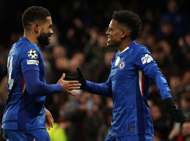 易边再战比分落后的巴萨还要面对10打11的不利局面,多一人的切尔西展开猛烈攻势,开场仅9分钟,切尔西中前场右侧断球反击,连续的传递,詹姆斯策应直塞,埃斯特旺插上禁区前沿接球,强行突破2人包夹杀入禁区,灵活的闪出空当后近距离大力爆射,皮球应声入网,切尔西2:0领先。第72分钟,切尔西右路反击,内托带球一路往前推进斜切到禁区弧顶前,巴萨这边无人紧逼,内托轻松的送出精妙斜塞,恩佐插上突入禁区获得单刀良机,恩佐没有自己射门,选择了横传做饼,德拉普小禁区前沿抢点迎球轻松推射得手,主裁在VAR确认后,认定这个球恩佐插上时没有越位,进球有效,切尔西3:0锁定胜局。